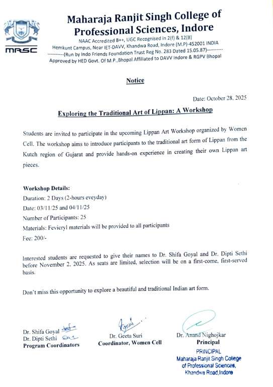 Affiliated to DAVV Indore & RGPV Bhopal | NAAC Accredited B++(2.99)